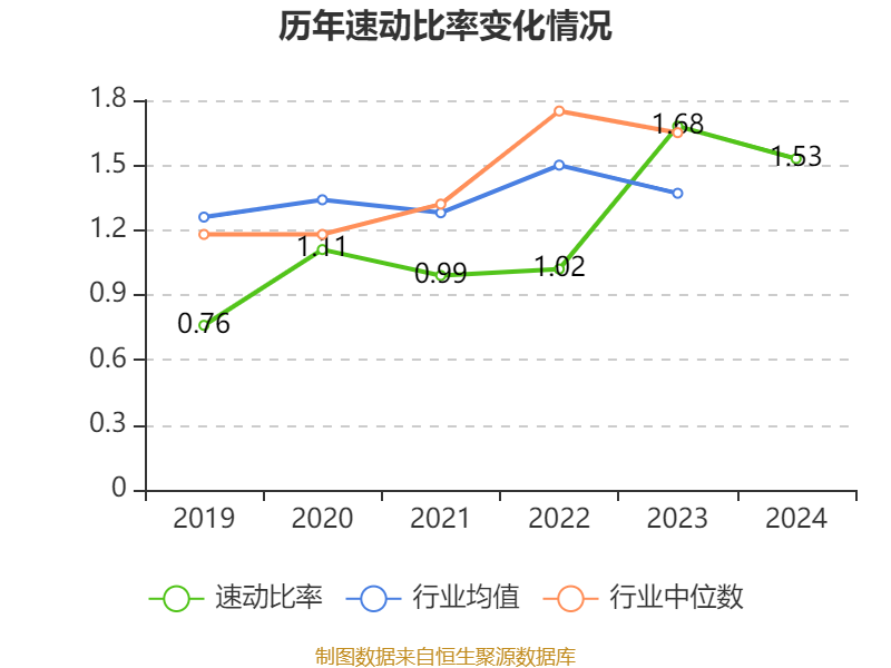 2024年,公司流动比率为1.84,速动比率为1.53。