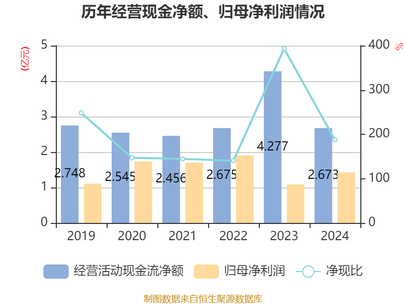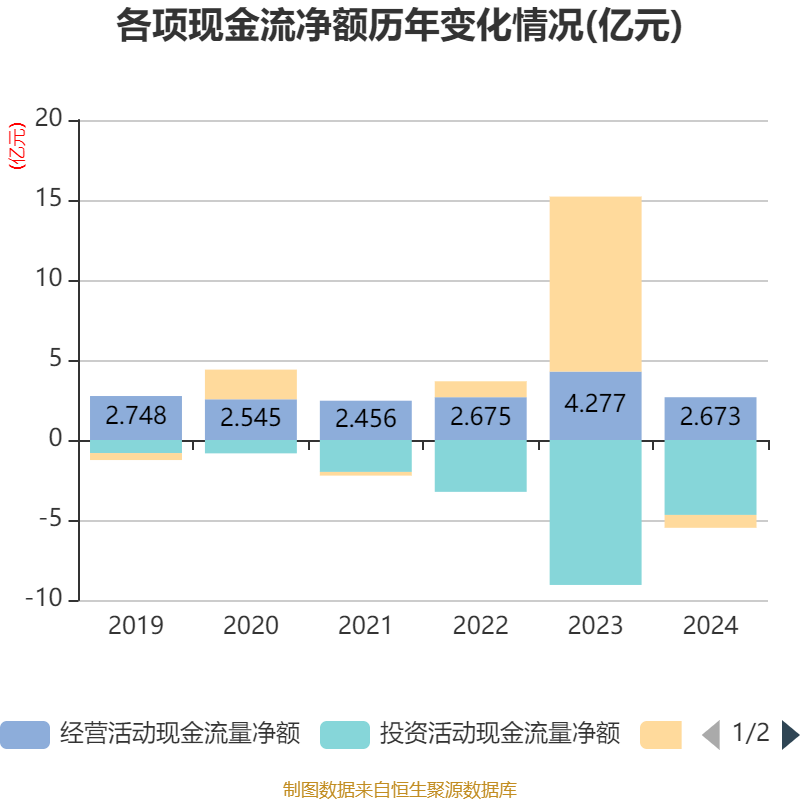 截至2024年,公司经营活动现金流净额为2.67亿元,同比下降37.5%;筹资活动现金流净额-8053.65万元,同比减少11.74亿元;投资活动现金流净额-4.68亿元,上年同期为-9.06亿元。