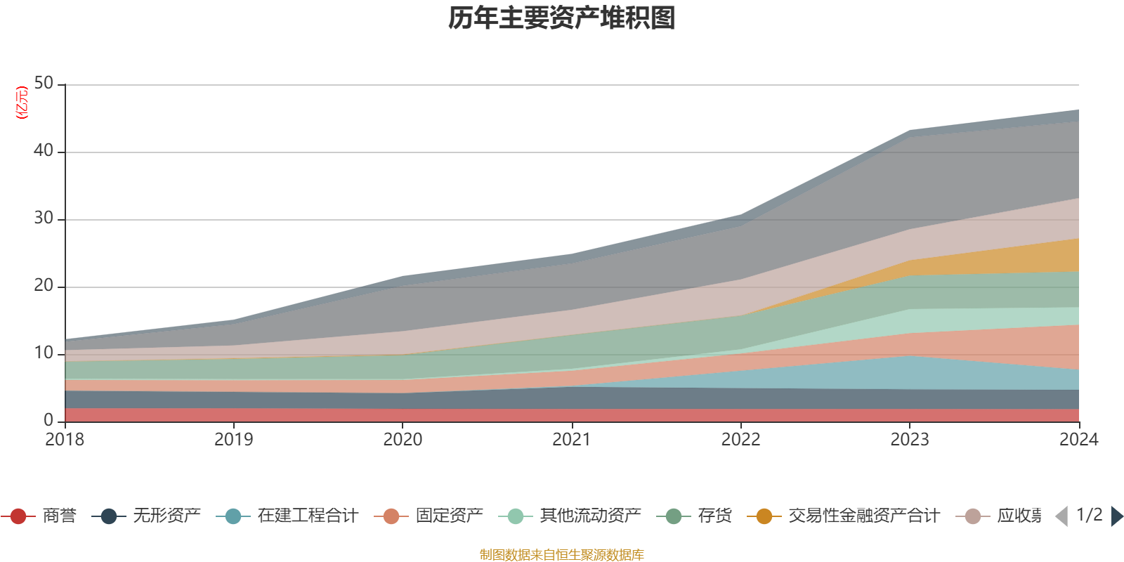 资产重大变化方面,截至2024年末,公司货币资金较上年末减少16.46%,占公司总资产比重下降6.93个百分点;固定资产较上年末增加99.04%,占公司总资产比重上升6.65个百分点;交易性金融资产合计较上年末增加118.04%,占公司总资产比重上升5.43个百分点;在建工程合计较上年末减少39.64%,占公司总资产比重下降5.02个百分点。